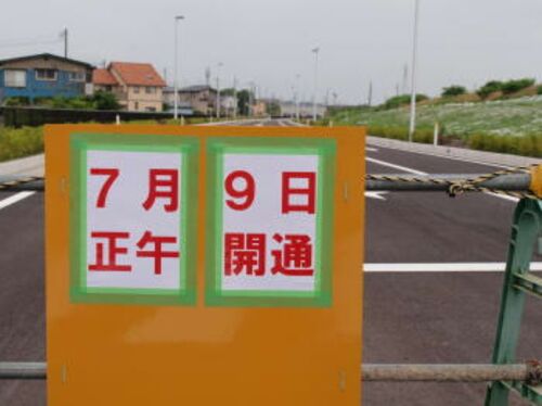 先日紹介した、秋田市茨島(ばらじま)からJR羽越本線の下を潜って牛島・仁井田地区側へ抜ける雄物川沿いの秋田市道「南部中央線」。 「7月9日正午開通」 ずいぶん控えめな掲示が両端に出ていた。来週の水曜【訂正】金曜か。路面には白線が引かれていた。 開…