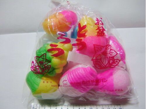 もう8月、(月遅れの)お盆も近い。 秋田(+青森津軽、所によっては山形庄内や岩手でも)のお盆に欠かせないのが「盆灯籠(とうろう)」。 照明の灯籠ではなく、仏事やお盆らしいアイテムをかたどって着色したモナカの皮状のもので、それを盆棚に吊るす風習…