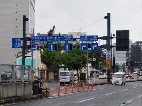 2025年7月28日の千秋城下町への歩行者用信号機新設に続く、最近の秋田市内の信号機の話題。所在としては旭北寺町、旭北錦町、旭北栄町の境目付近。県道26号・竿燈大通りに、県道62号・秋田中央道路の地下トンネル「旭北出口」から出た車線が合流する地点の信…