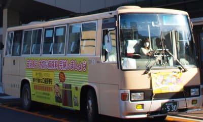 一部には、側面全面とまではいかなくても広い範囲をラッピングした(シートを貼った)バスがあった。