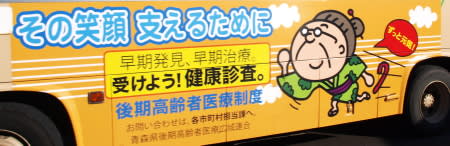 ほかにも、土手町循環100円バスに充当されていた弘前営業所の三菱製中型バスは、秋田にもある、黄色い背景にアンパンマンが描かれたJA共済の広告で、ほぼ全面がラッピングされていたと思う(弘南バスでは極めて珍しい)。しかし、近くで見ると、ラッピングが凸凹しているというか斜めの線(筋)みたいなのがあり、なんというかラッピングが下手に見えた気がした。ラッピング広告に慣れていないのか。