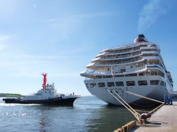 自分の力で動けない後部だけをタグボートに押してもらっていたようだ。