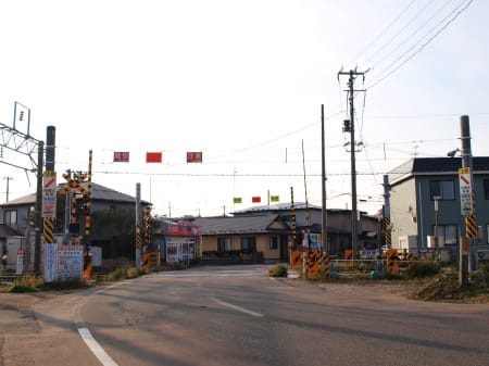その踏切は、駅のすぐ(150メートルほど)南側にある。