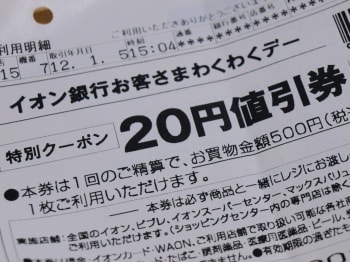 たかが10円だけど「自分のおカネを下ろしただけでオマケをもらえる」のと同じことだから、もらえるものはもらっておこうと、僕は5のつく日にイオンへ出かけることが多くなった(←イオンの思う壺)。