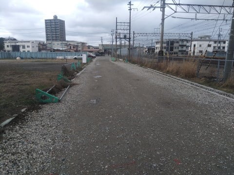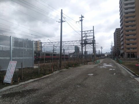 反対の西側では、区画整理も進んでいる。線路沿いには2年ほど前に新たな道ができたが、アンダーパス真上になりそうな場所は、未舗装のままだった。※2019年5月の記事後半。