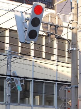 その交差点の信号機は、歩行者用がなく、車両用のみ。