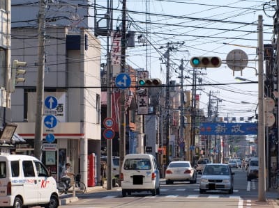 秋田市中心部、川反の1本西の「大町通り」とか「赤れんが館通り」と呼ばれるバス通りと、新国道から四丁目へ至る一方通行路(竿燈大通りから2本南)が交わる交差点が今回の舞台。角にかつて北都銀行秋田支店だったビル(現在は飲食店)があり、NTTドコモやアルバートホテルのそば。