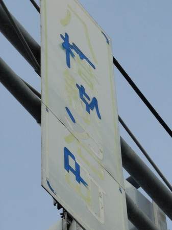 劣化が著しい標識には共通点がある。いずれも県道を北進する車が見る側、つまり南向きに設置されている標識。北向きでは、多少の剥離はあるにしてもすべての交差点で判読に支障がない(下の写真)。バス停表示板の色あせやシールに印字した文字でも指摘したが、お日さまの光の力が、こうさせたのだろう。