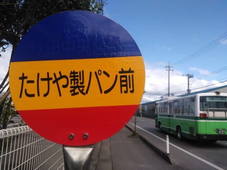 だけど、バス停名が「たけやパン前」と「製」が抜けてしまっている。