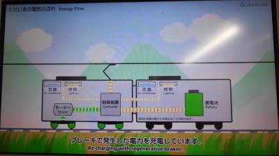 蓄電池式電車では、バッテリーへ貯めることばかりが頭にあって意識していなかったが、電化区間では普通の電車と同じように機能するようだ。