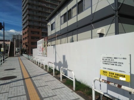 近くのほかの場所が代わりの置き場になってはいなそうで、その都度、遠くから運搬しているのだろうか。(長い大通りの端の産業会館跡地に置いたからと言って、とても便利というわけでもなかったようにも見える。素人目では)【11日補足】コメントによれば、1ブロック離れた大町一丁目の旧魁本社裏の秋田市管理地が代わりの置き場になったとのこと。