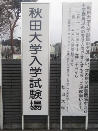 そして、「秋田大学入学試験場」の看板。センター試験のと同じく「ナール」書体だ。いっしょに発注したのだろう。これは来年度以降もまだまだ使えそうだから、大事にしてほしい。