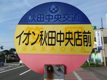 神田笹岡線は、2011年3月末で廃止され、秋田市マイタウンバス北部線に再編された。現在はキングタクシーが受託運行しており、バス停は別のタイプ(「バスで行こう」にシールを貼ったもの?)が使われているはず。