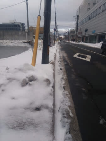 写真の状況では、普通自動車の通行にはほぼ支障がない。だから、秋田市役所も急いで路肩の雪山を崩す排雪をしていないのだろう。住民の多くも、自家用車で通ることできれば、それで満足なのだろう。