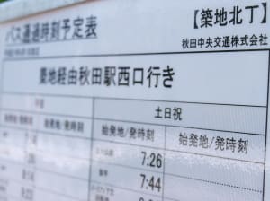 4.築地に関しては秋田市のバス停の命名法則を理解していれば、「きたまち」「しもまち」などという名称はあり得ない。創業85年だかの老舗バス会社のやることとは思えない。