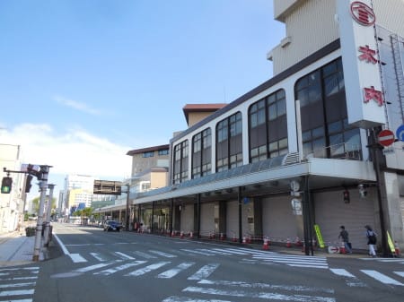 「木内」はかつては秋田市の一大商業施設であった百貨店。建物はそのまま、売り場を縮小して衣料品店となって、堅実というかかたくなにというか、営業を続けていた。しかし、新型コロナウイルス感染症が流行した2020年3月頃から「当面の間 臨時休業」で、シャッターを下ろしたまま。