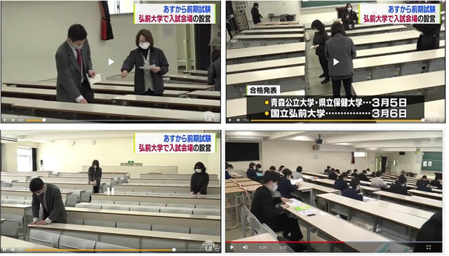 【2024年1月15日追記・2024年度共通テスト前日の報道より】青森朝日放送は青森大学、NHK青森が弘大で取材。弘大は恒例の201か301で、室内に目立った変化はなさそう。