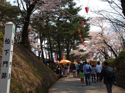 秋田市の桜まつりとしては最大規模だけに、出店も多く出て、二の丸広場周辺にずらりと並ぶ。