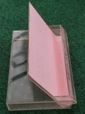 カセットテープケースは、2つのパーツからなる。初期のケースは、テープ(ここではメモ用紙)を入れる側は透明で、もう一方は黒いものが一般的だった。1980年代半ば(バブル前後)頃には、どちらも透明のものが主流になり、このメモ用紙もそれにならっている。