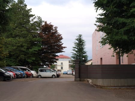裏側が見えていることになるが、バス停からちょうどまっすぐの位置で、第三中越しに見えるとは知らなかった。