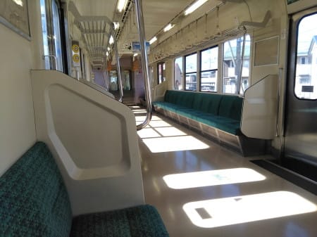 その間の時間帯に、こんなガラガラの3両編成に乗るのは申し訳なく感じられ、しかも臨時5往復も使えるような3両編成が遊んでいるのなら、どこか2両編成が走る運用に入れてあげてほしいと思ってしまった。