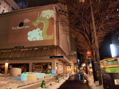 12月9日から1月8日までの17時から21時に行われ、クリスマス前はクリスマス関係の、以後現在は年越しにちなんだ映像が流れている。※12月30日から1月1日はメンテナンスのため休みとの情報もあるが、昨日30日はご覧の通りやっていた。