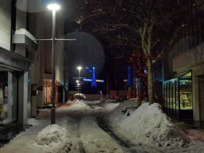 フォーラスの壁面と同じアニメを小型化して投影。こっちも暗いので見やすい。もし雪が積もっていたら、真っ白なスクリーンでまた違って見えるだろうか。歩きにくいけど。