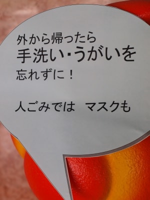手洗い・うがいについてはまったくその通りだが、いちばん下。「外ではマスクも」この表現がひっかかる。