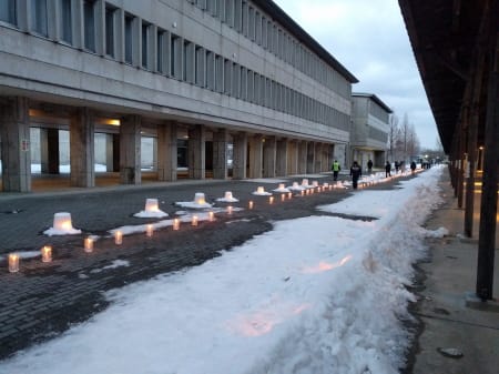 冒頭の写真のように、現地には「雪が少ないため、例年のような「光のファンタジーロード」の演出ができませんでした。」と規模を縮小する断り書きがあった。たしかに、秋田公立美術大学の学生による雪のオブジェなどは見られなかった。ただし、昨年はあった。