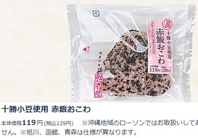 ちょうど訪れた時も、ローソンで「十勝小豆使用 赤飯おこわ」が発売されていた。